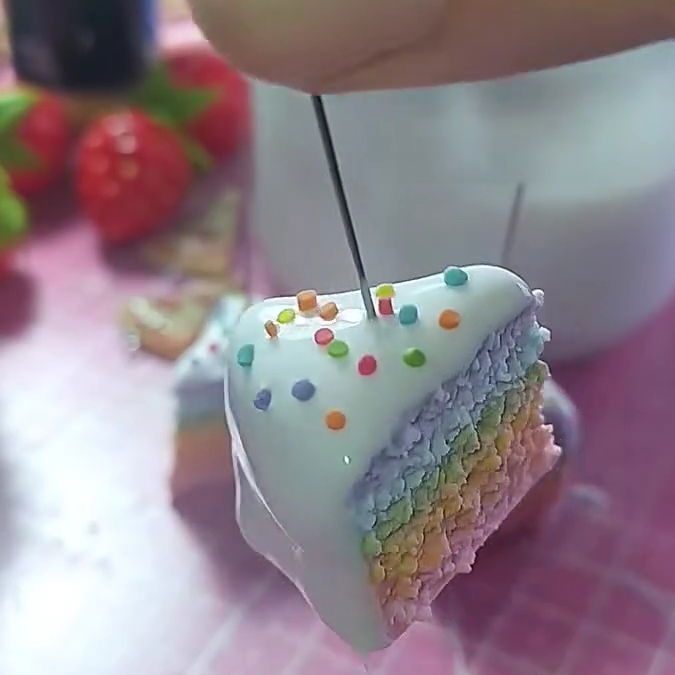 Te enseño a hacer las porciones de torta arcoiris miniatura más realistas para aritos, llaveros o comida para muñecas